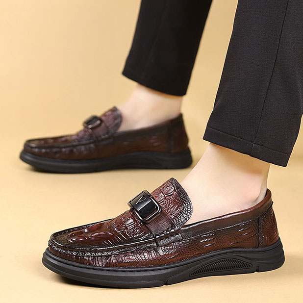 Genuine leather crocodile pattern slip-on casual loafer NFE586